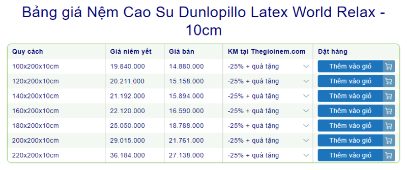 Nệm cao su thiên nhiên 10cm đang là sự lựa chọn của rất nhiều khách hàng tại thế giới nệm. Mỗi dòng nệm lại có một mức giá khác nhau điều này đã làm nhiều khách hàng bâng khuâng về giá nệm cao su 10cm. Chính vì vậy thế giới nệm sẽ giúp khách hàng hiểu rõ hơn về giá của các dòng nệm cao su thiên nhiên có độ dày 10cm nhé!