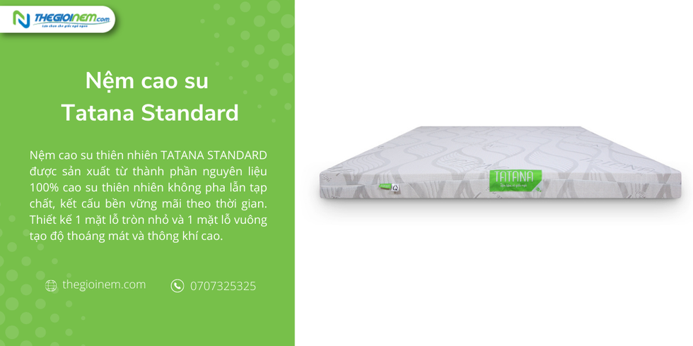 Bề mặt nệm được thiết kế dạng lỗ thông hơi ở cả 2 mặt: mặt trên lỗ tròn nhỏ, mặt dưới lỗ tròn vuông. Nệm Tatana được xử lý qua dây chuyền nghiêm ngặt, đảm bảo an toàn tuyệt đối với người dùng. Áo nệm sử dụng vải thun lạnh có khả năng thấm hút mồ hôi nhanh, ngăn chặn sự phát triển của nấm mốc. Thiết kế thông minh, dạng dây kéo ôm sát chạy dọc theo phần thân nệm.