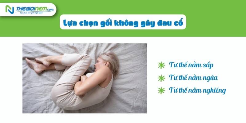 Ví dụ, một người nằm nghiêng khi ngủ nên chọn lựa gối nệm cao su có lông vũ mỏng và độ dày vừa đủ để luôn giữ cho cột sống cổ luôn thẳng so với lưng. Ngoài ra, nếu bạn nằm ngửa với tư thế thẳng lưng thì nên chọn gối cao su, gối xốp định hình để kê cổ tránh đau lưng.