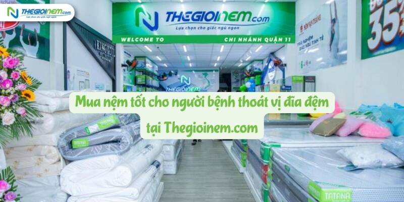 Nếu bạn đang phân vân không biết chọn địa điểm mua nệm cho người bệnh thoát vị đĩa đệm ở đâu thì tốt nhất? Hãy thử trải nghiệm cửa hàng Thegioinem.com, đây là nơi bán nệm uy tín với hơn 13 năm kinh nghiệm hoạt động trong lĩnh vực chăn ga gối nệm. Tại đây chuyên cung cấp các sản phẩm nệm chính hãng, chất lượng như nệm cao su, nệm bông ép, nệm lò xo, … đến từ các thương hiệu lớn như nệm Kim Cương, nệm Vạn Thành, nệm Liên Á, …