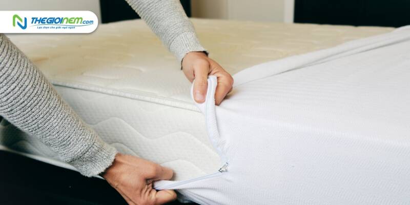 Để bảo vệ chất lượng cũng như tăng tuổi thọ nệm sau khi mua, bạn nên trang bị cho nó một tấm bảo vệ nệm dạng drap chống thấm, topper, … Tấm bảo vệ này sẽ bọc quanh nệm để tránh bị lấm bẩn từ thức ăn, đồ uống hay bụi bẩn từ bên ngoài. Nó cũng sẽ giúp hạn chế tối đa việc nấm mốc và vi khuẩn xâm nhập, từ đó bảo vệ sức khỏe của người dùng.