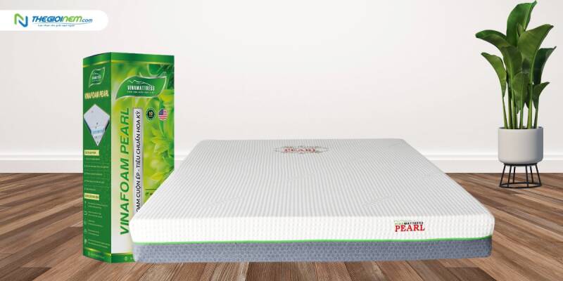 Nệm Foam cuộn ép Vinafoam Pearl được thiết kế với công năng tối ưu và hộp tiện lợi, khiến cho quá trình vận chuyển và lưu trữ trở nên dễ dàng hơn bao giờ hết. Với vải áo nệm gấm xốp in nổi họa tiết Vinamattress và vải sợi thủy tinh kháng cháy tiêu chuẩn Mỹ, sản phẩm này không chỉ đẹp mắt mà còn an toàn và chất lượng.