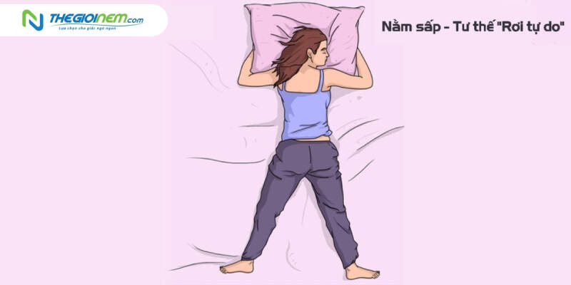 Tư thế ngủ rơi tự do, hay tư thế ngủ trên bụng là khi bạn nằm ngửa và ngực được đặt trực tiếp lên giường, mà không có gì ở giữa. Tuy nhiên, tư thế này không phải là tư thế ngủ khuyến cáo, vì nằm ngửa hoàn toàn có thể gây căng thẳng và áp lực lên cổ và lưng.