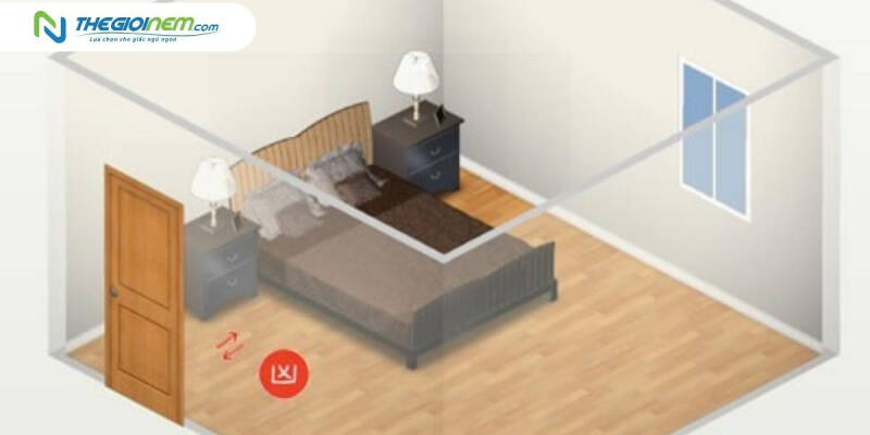 Tránh đặt cửa phòng ngủ đối diện giường vì nó có thể tạo cảm giác không an toàn và không ổn định trong giấc ngủ của bạn và làm giảm sự riêng tư của người ở trong phòng ngủ.