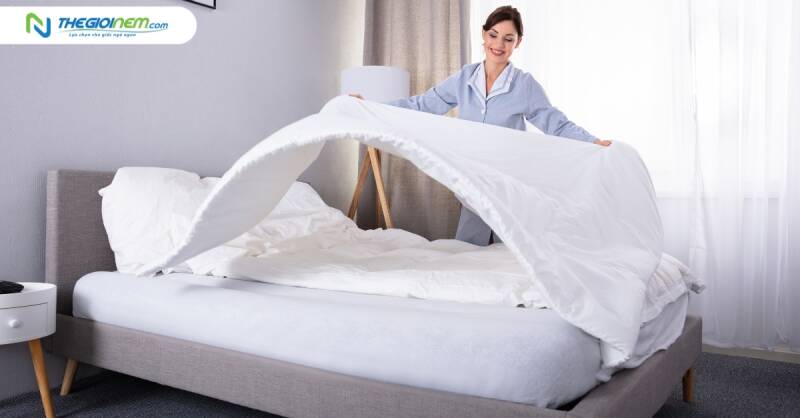 - Chăm sóc nệm: Sử dụng ga phủ giúp bảo vệ nệm khỏi bụi bẩn, mồ hôi, dầu thải từ cơ thể và các vết bẩn khác, giúp kéo dài tuổi thọ của nệm và duy trì sự sạch sẽ và vệ sinh.