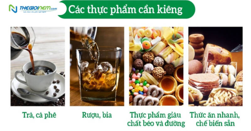Các thực phẩm và thức uống có thể ảnh hưởng đến giấc ngủ và do đó cần được hạn chế hoặc tránh trong trường hợp mất ngủ kéo dài: