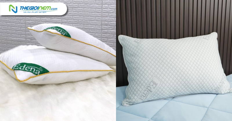 Gối nằm Edena: có chất liệu gòn tự nhiên được kiểm định chặt chẽ trước khi đưa vào sản xuất, không gây kích ứng đối với các vùng tiếp xúc trực tiếp như cổ, đầu, da mặt, đảm bảo an toàn tuyệt đối cho người sử dụng. Độ phồng, độ đàn hồi cao, hạn chế các tình trạng xẹp lún so với các loại gối thông thường, giúp bạn có tư thế gối đầu thoải mái và dễ chịu.