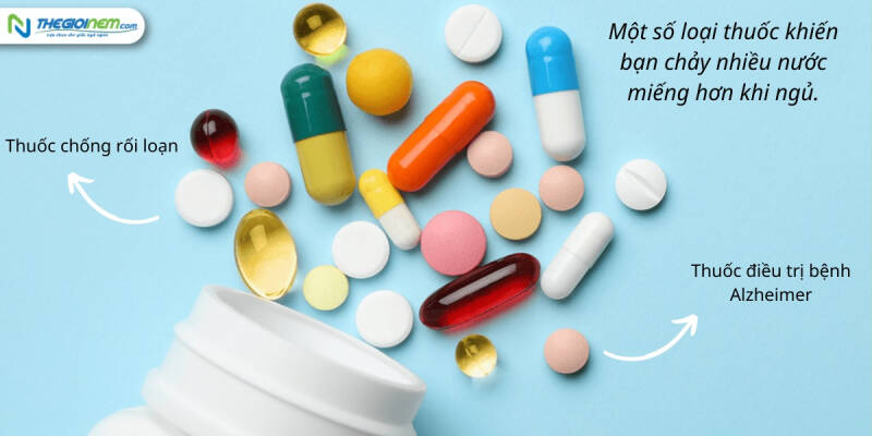 Một số loại thuốc, chẳng hạn như thuốc chống loạn, thuốc điều trị bệnh Alzheimer và các loại thuốc kháng sinh khác, khiến bạn chảy nhiều nước miếng hơn khi ngủ.