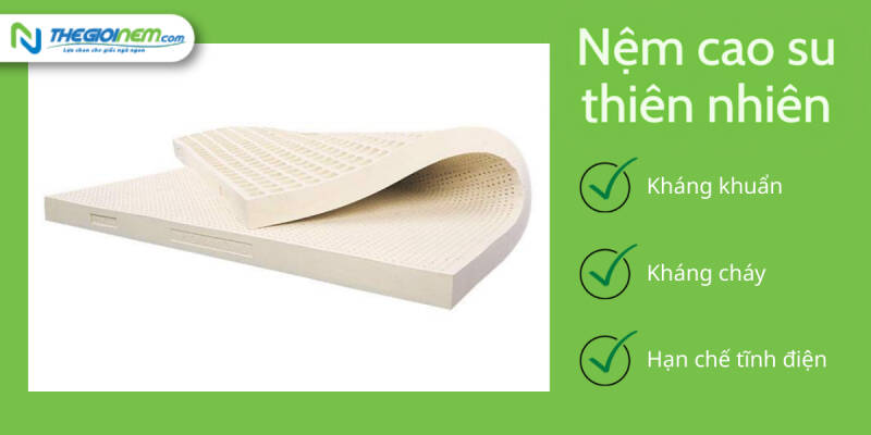 Nệm cao su thiên nhiên được sản xuất từ nguyên liệu 100% mủ của cao su tự nhiên. Cũng bởi vì những lý do đó mà đây là dòng nệm có mức giá, chất lượng và độ bền cũng như trọng lượng cao nhất.