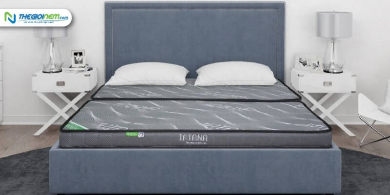Nệm cao su tổng hợp TATANA được sản xuất từ nguyên liệu tổng hợp cao cấp theo dây chuyền công nghệ tiên tiến hiện đại với thiết kế bề mặt nệm êm ái, chịu lực tốt, nâng đỡ tối đa mang đến cảm giác êm ái đưa bạn vào giấc ngủ sâu và yên giấc.