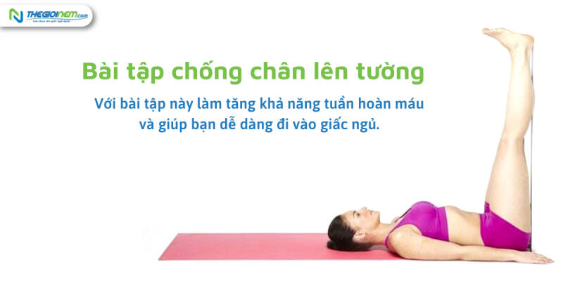 - Bạn nằm ngửa trên giường, đặt 2 tay song song, đồng thời, 2 chân đặt thẳng lên tường tường, giữ cơ thể trong trạng thái tự nhiên và thoải mái nhất.